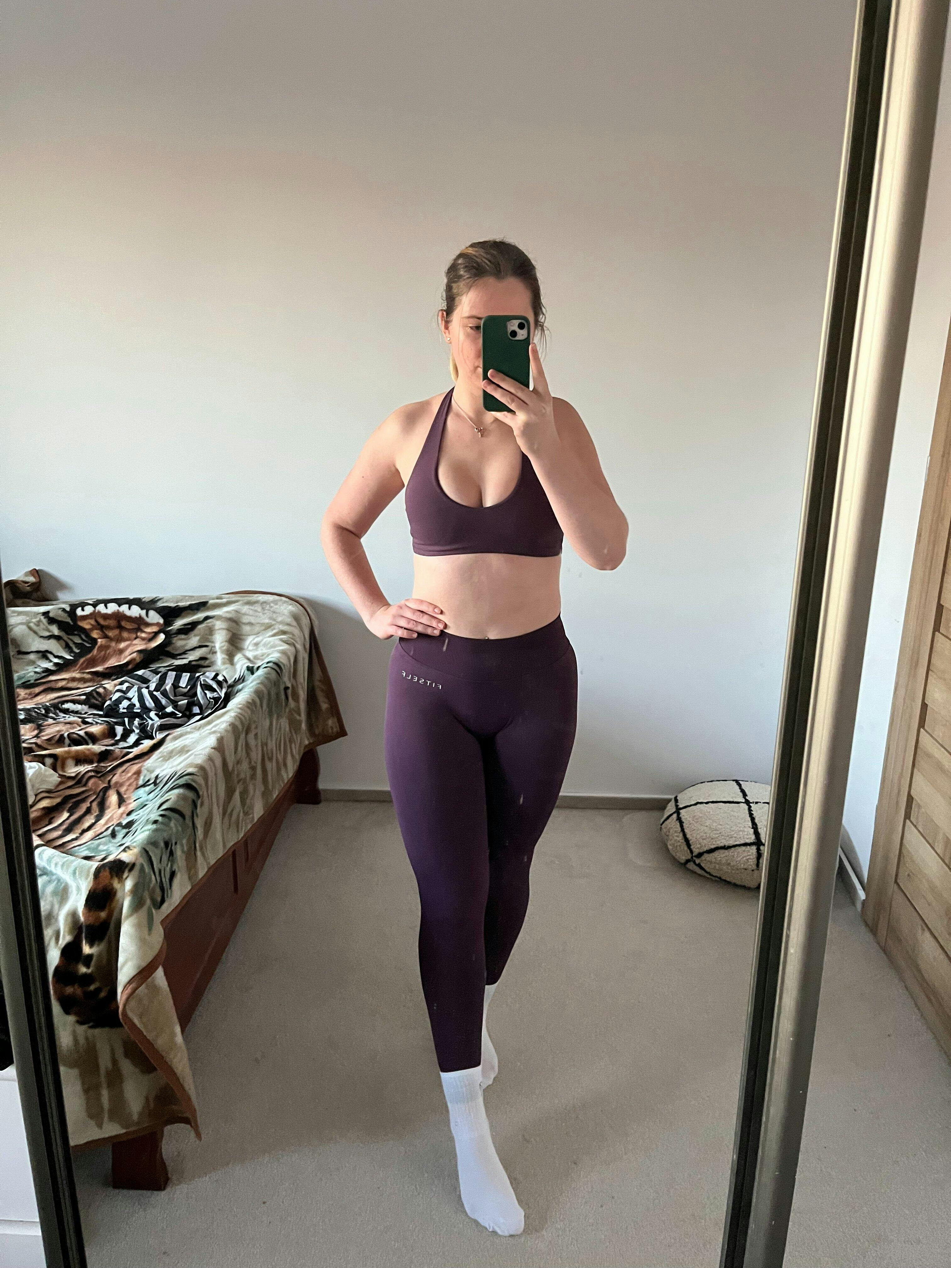 Top świetnie trzyma biust. Spodenki robią taki poślad że szok🫣🤩 Pas w spodenkach idealnie wszystko trzyma, wybaczają wszystko. W dodatku wizualnie robią wcięcie w talii. Jestem bardzo zadowolona 🤩🦋