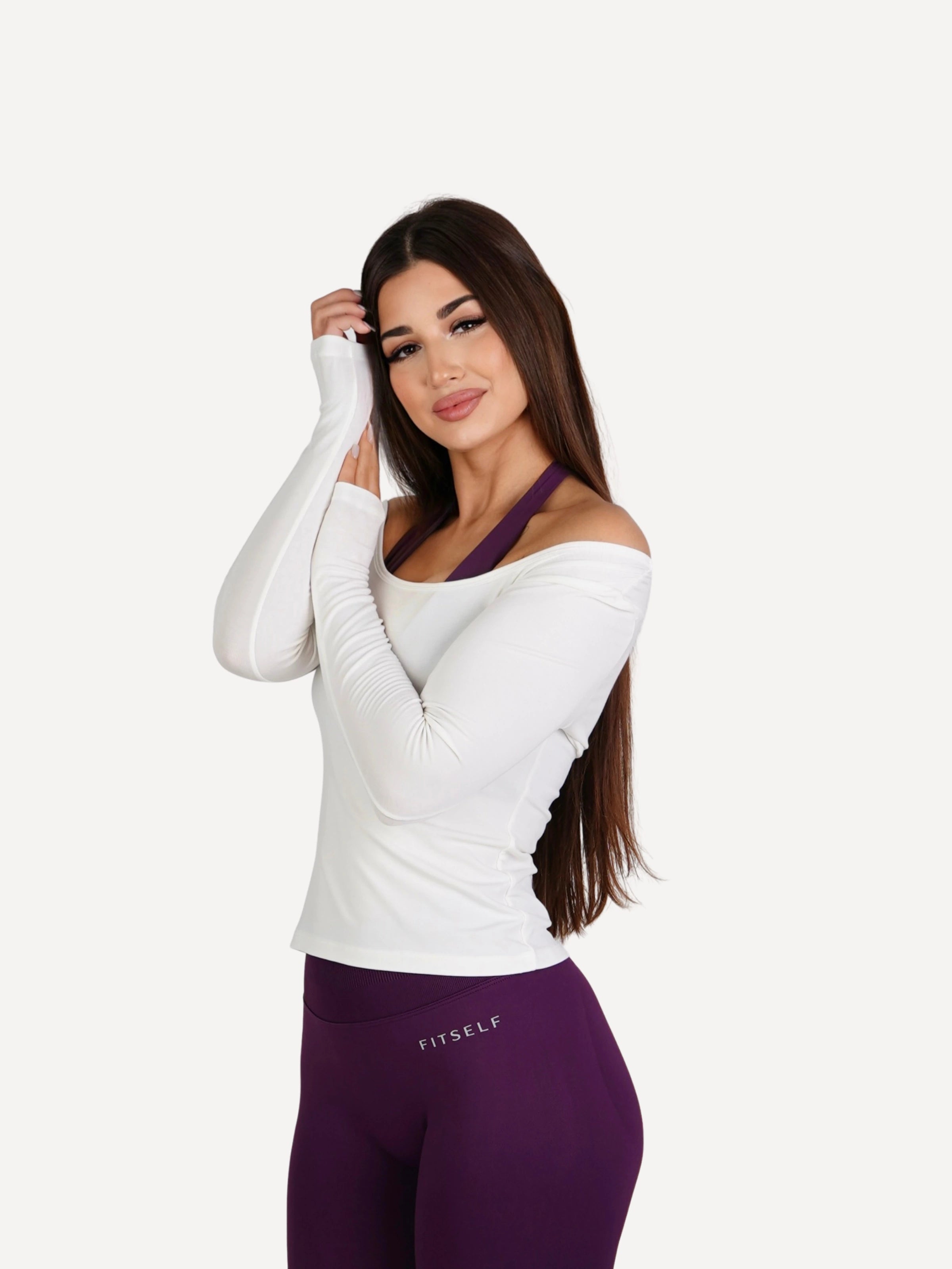 • Półokrągły dekolt, który możesz nosić klasycznie lub zsunąć na ramiona