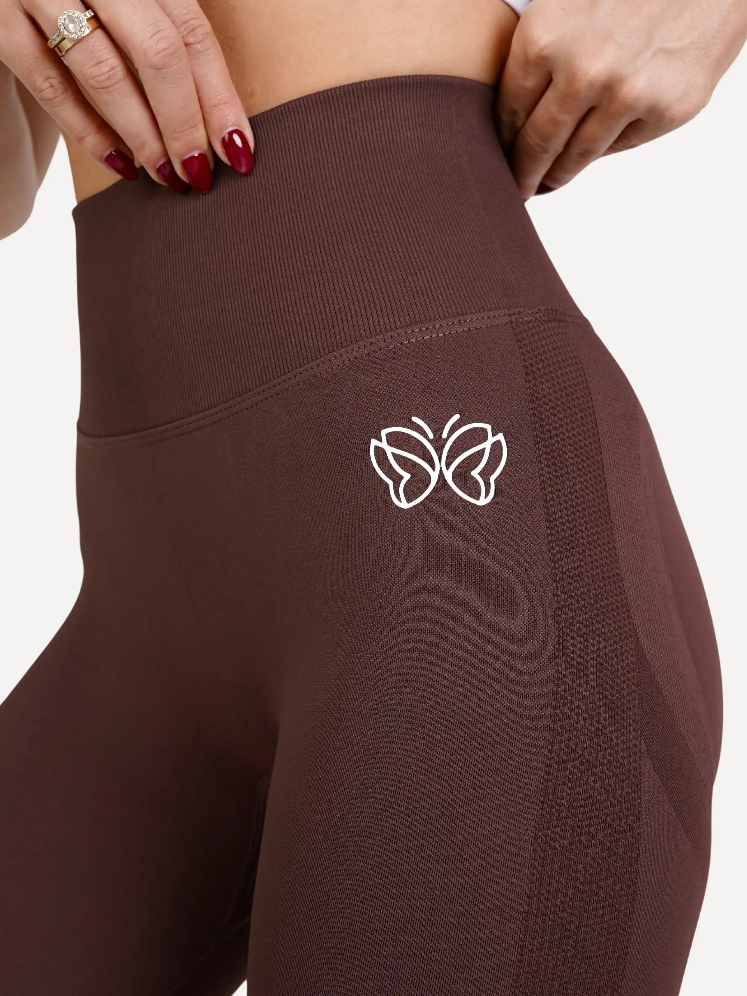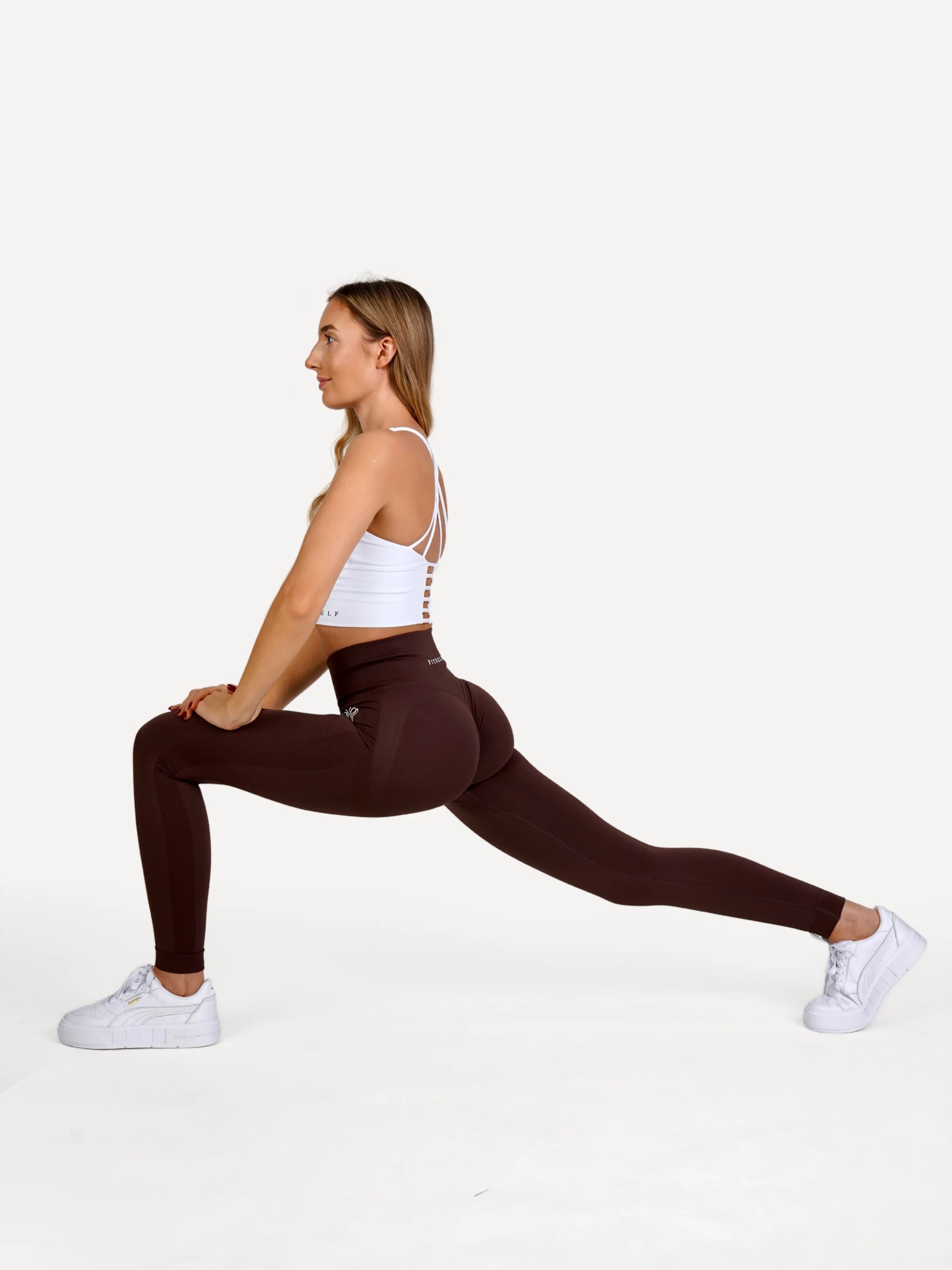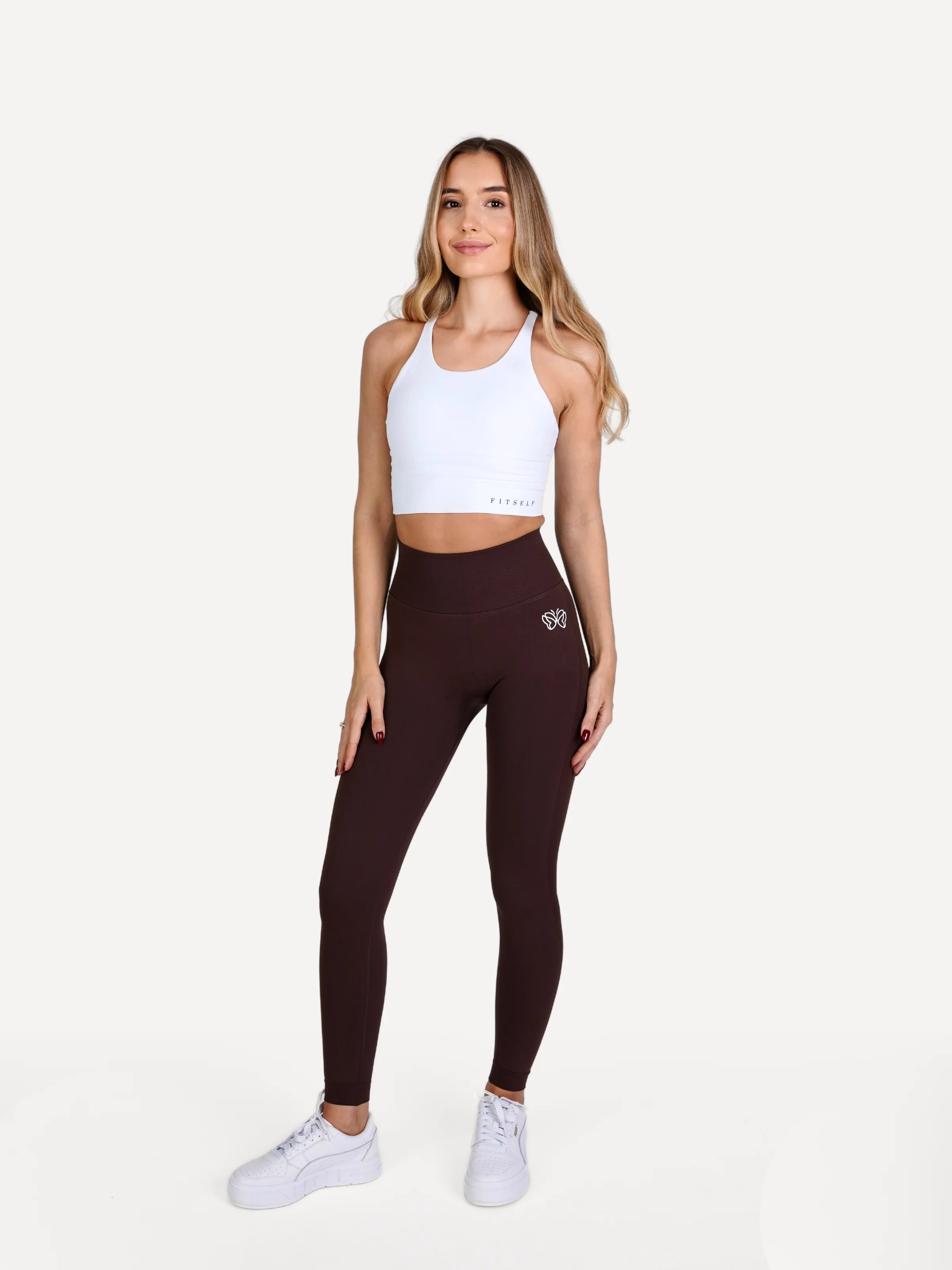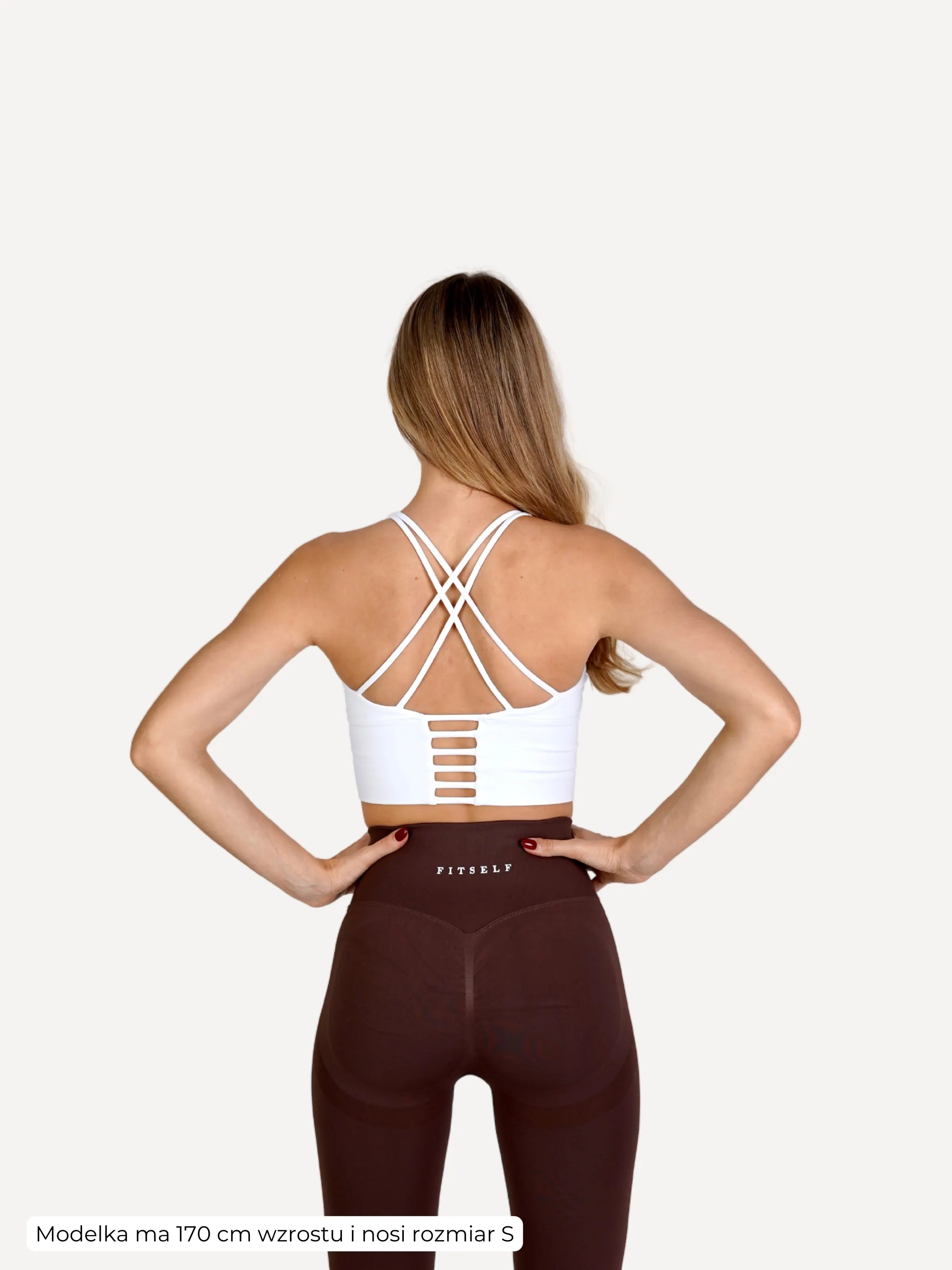 Zestaw Legginsy Double PUSH UP brązowe + Top STRAP BRA biały