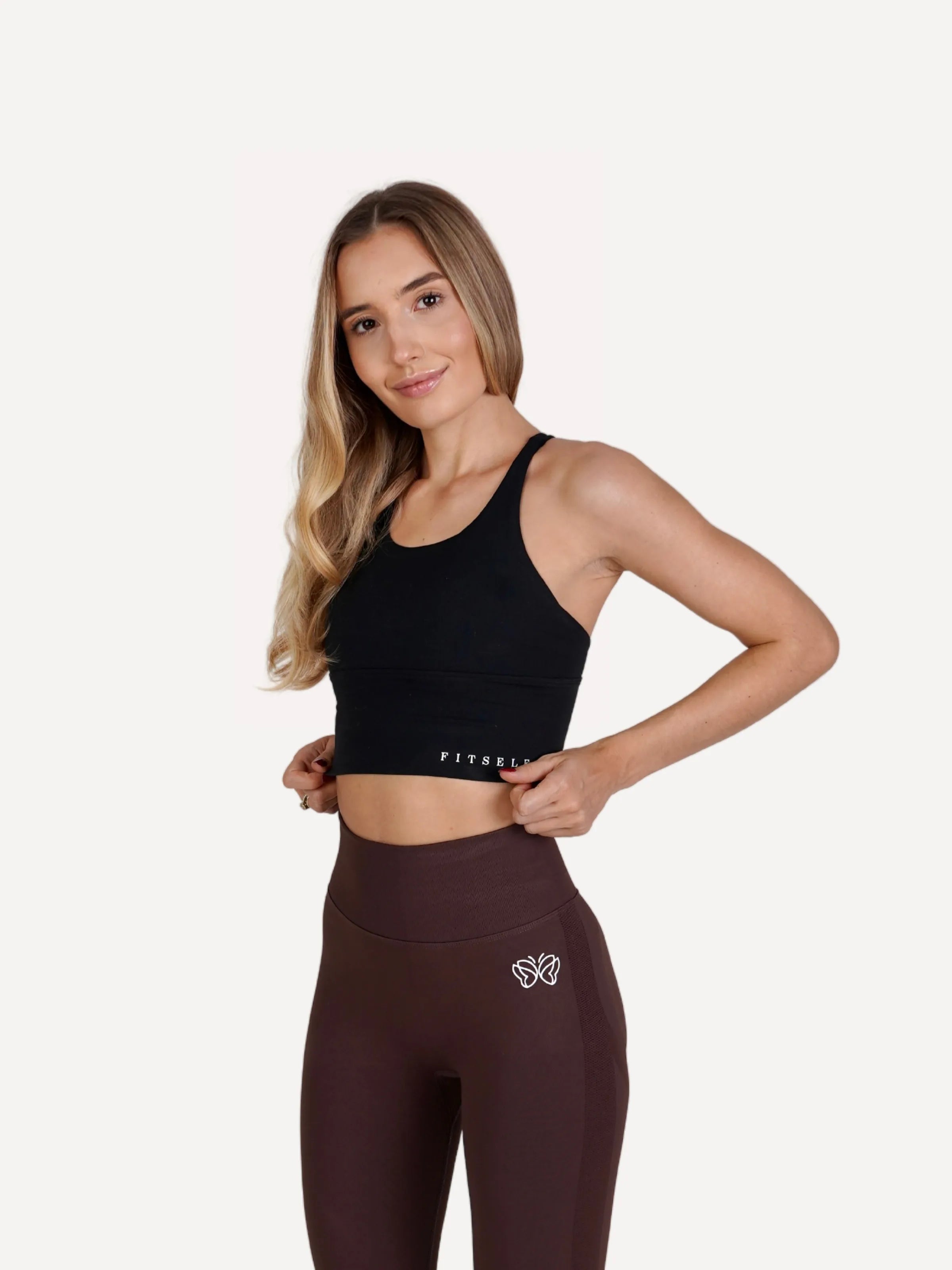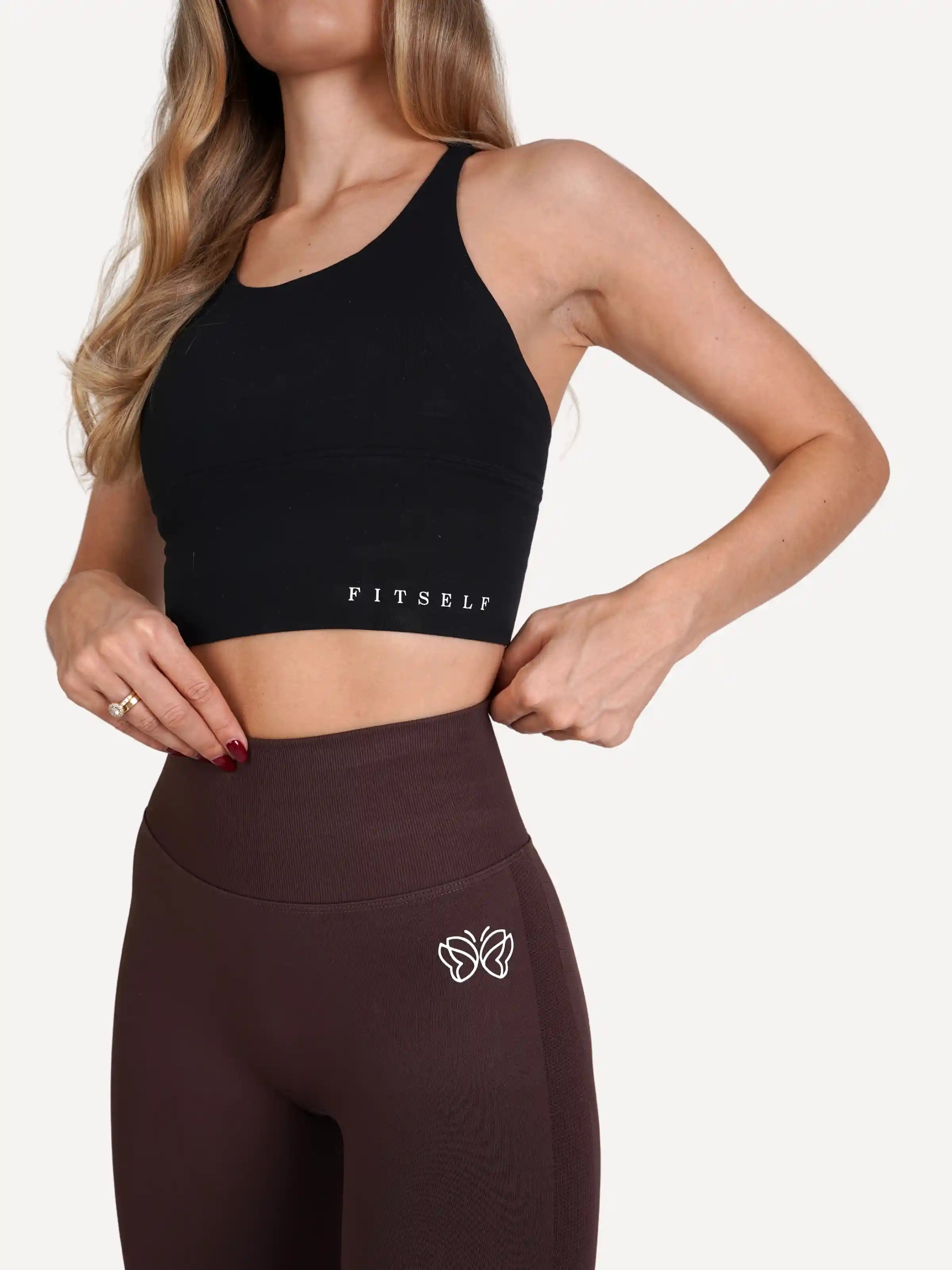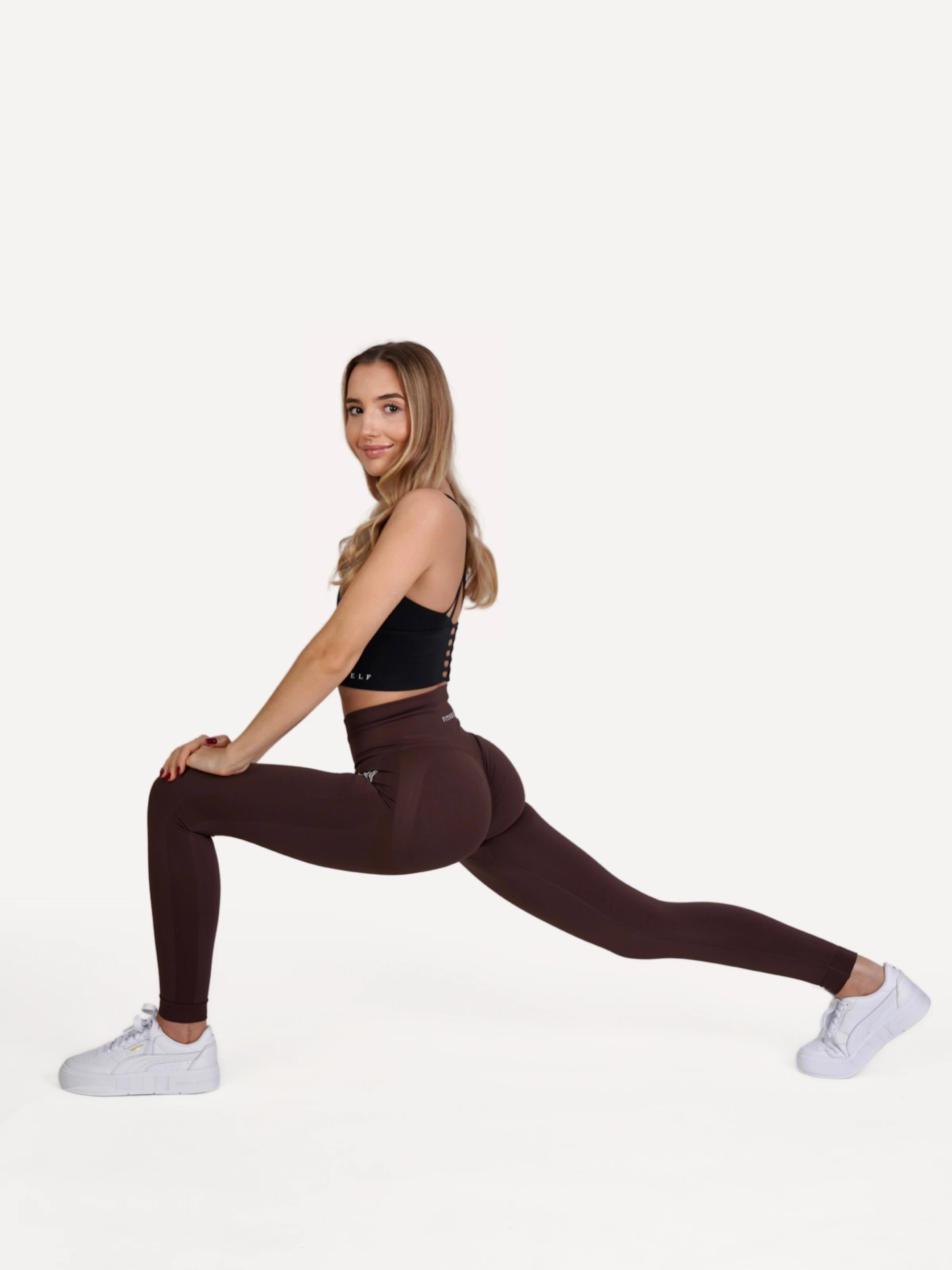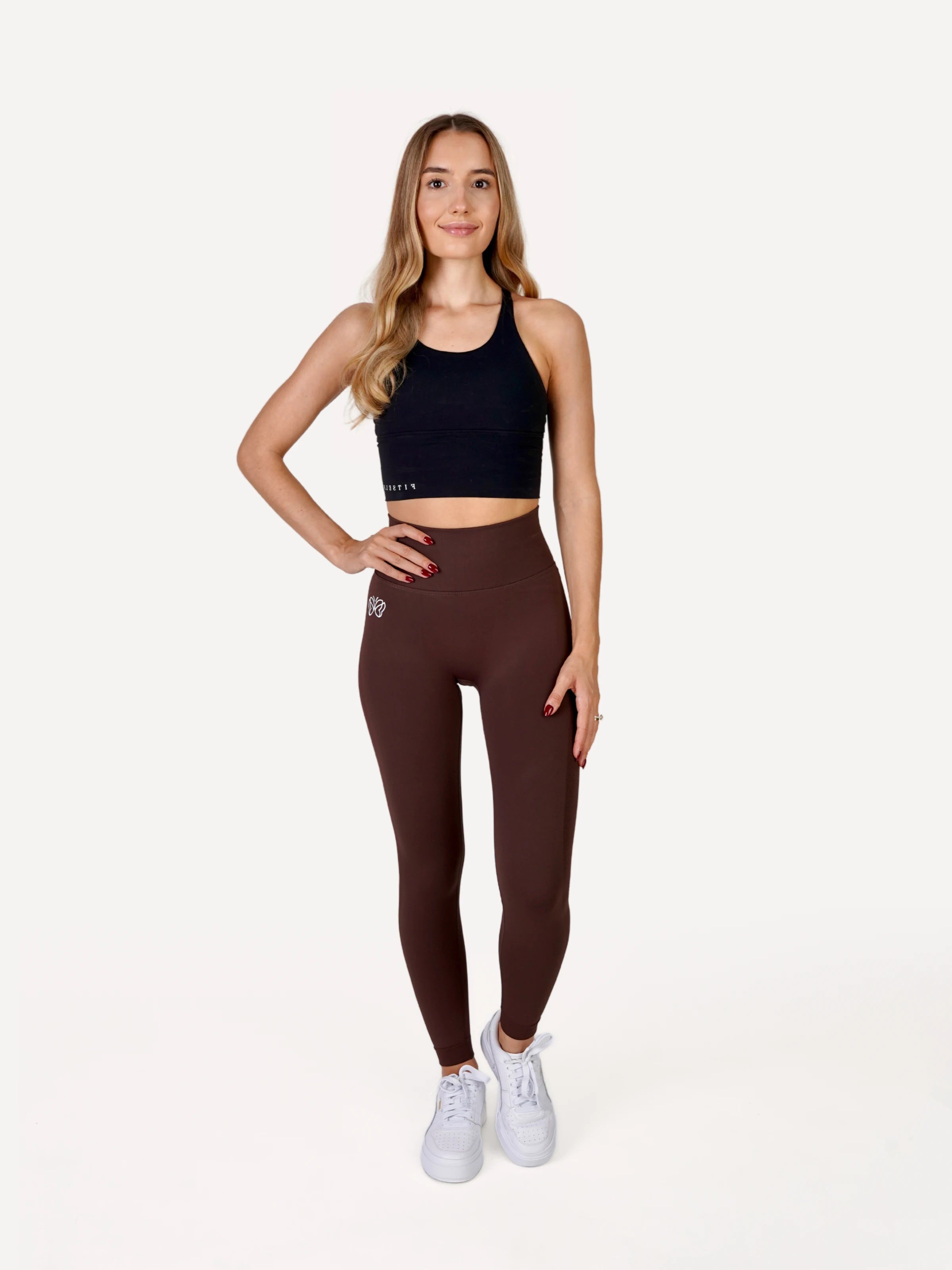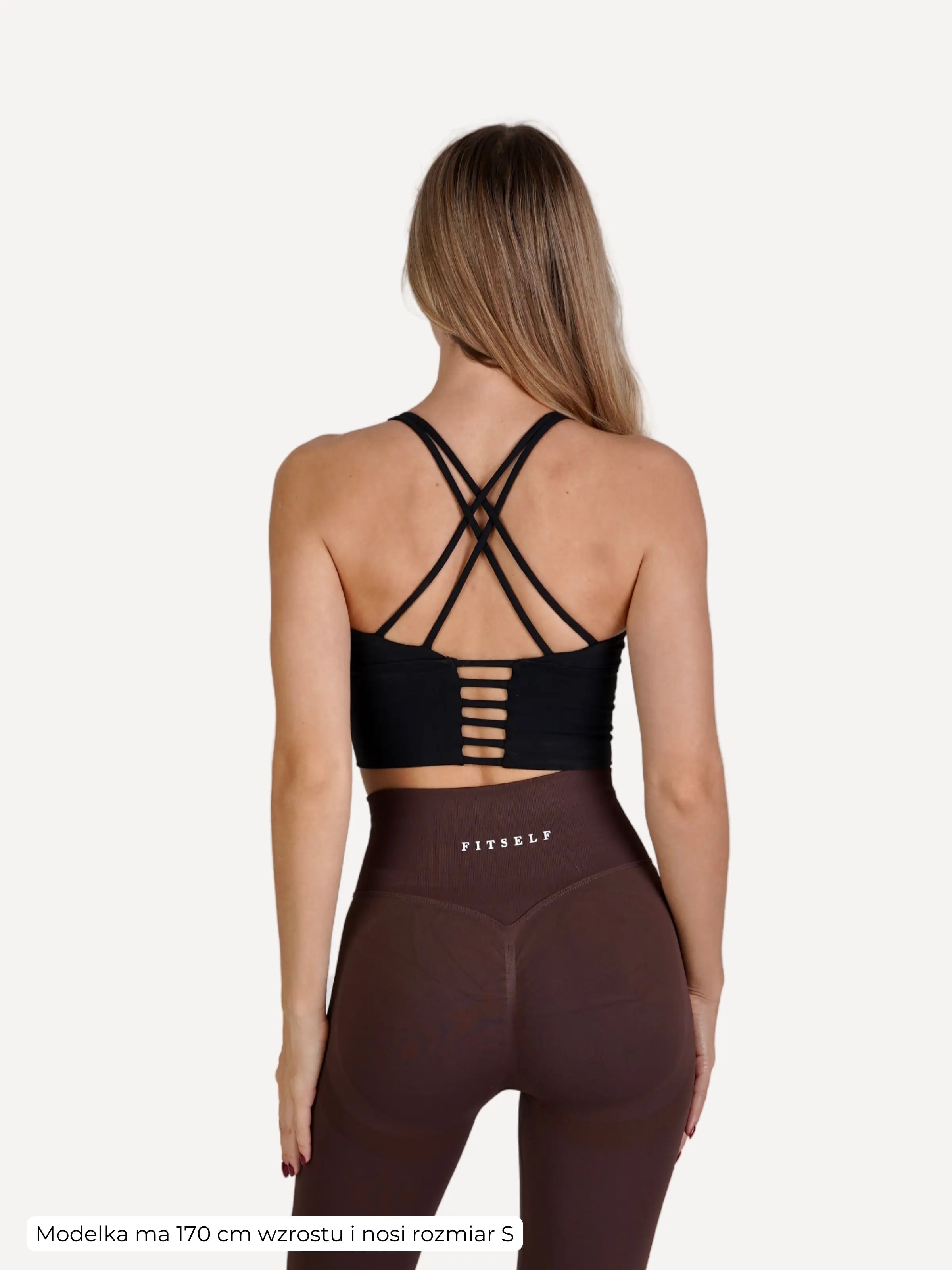 Zestaw Legginsy Double PUSH UP brązowe + Top STRAP BRA czarny