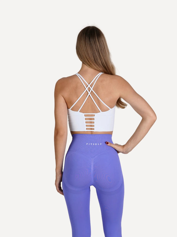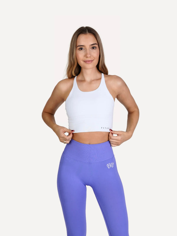 Zestaw Legginsy Double PUSH UP fioletowe + Top STRAP BRA biały