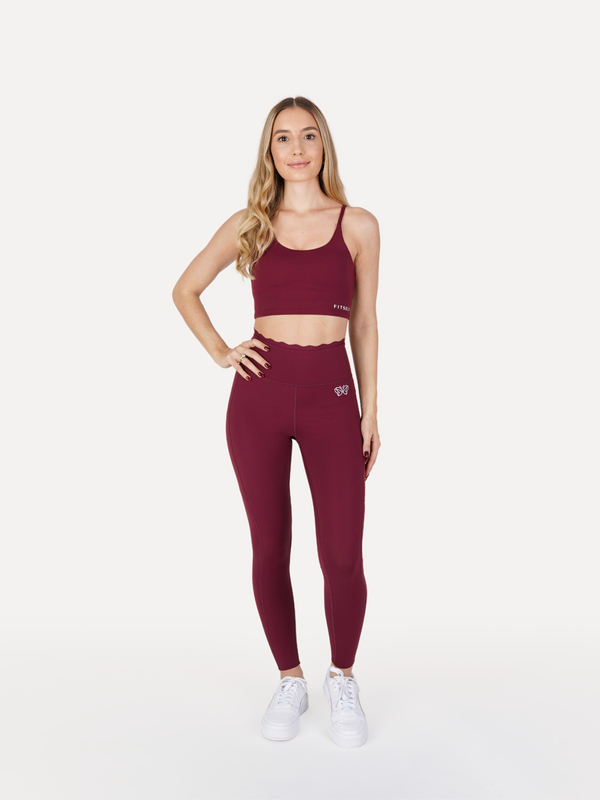 Zestaw Legginsy z falbanką + Top BALANCE bordowy