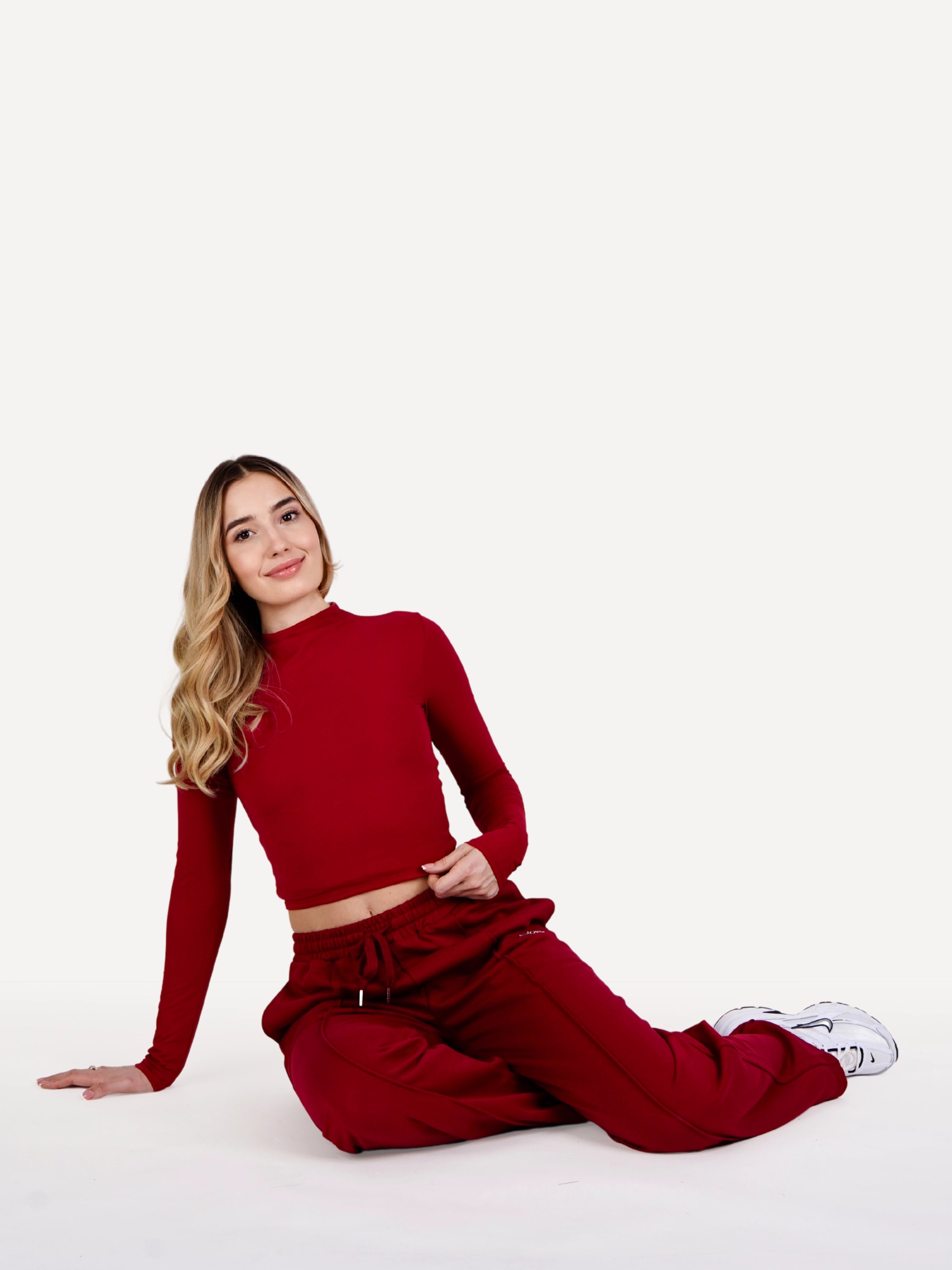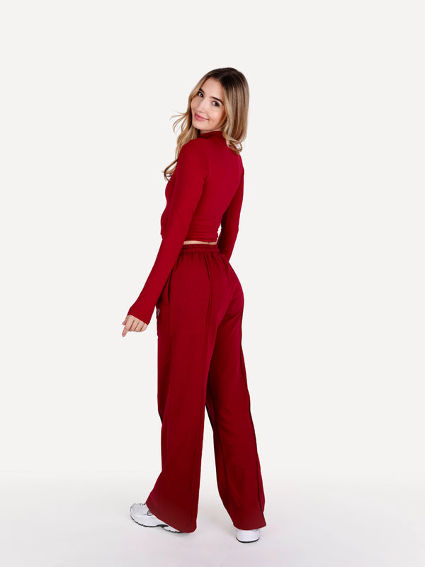 Zestaw longsleeve + spodnie dresowe COMFY burgundowe