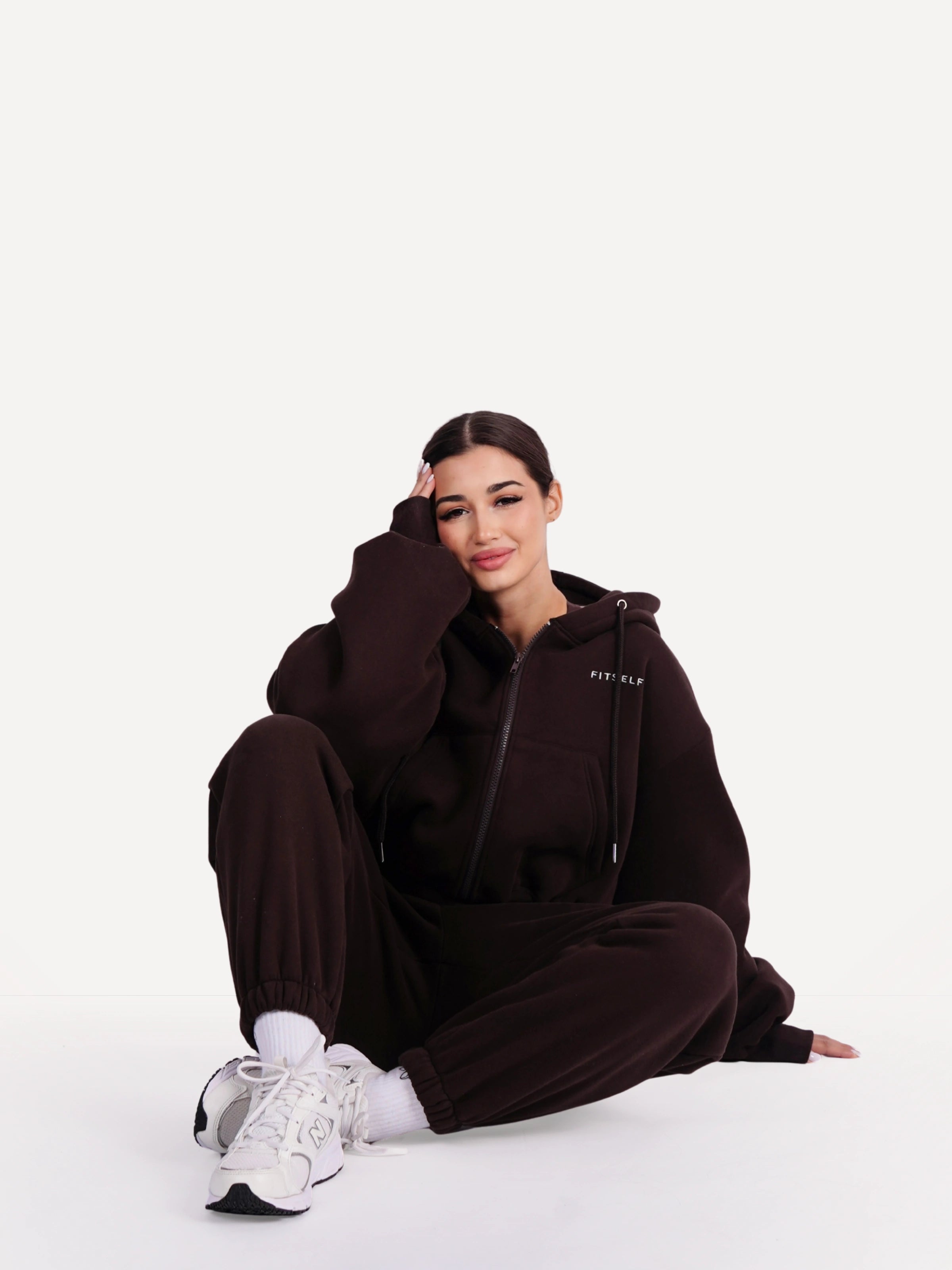 Zestaw rozpinana bluza + spodnie dresowe CLOUD brązowe